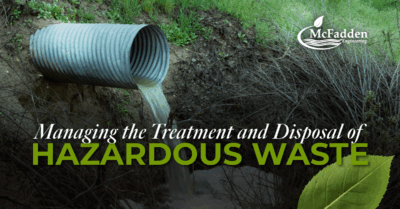 Environmental experts such as the team at McFadden Engineering support industrial companies through site assessment and necessary remediation, facility management and operations, water and wastewater treatment (which can be considered a form of hazardous waste recycling), environmental compliance and more.